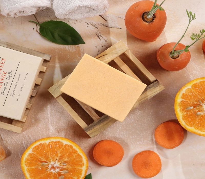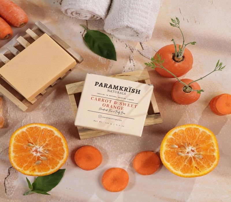 Reveal brighter, more even-toned skin with the Carrot & Sweet Orange Face & Body Bar, handcrafted with love in the lush Cumbum Valley, located at the foothills of the Western Ghats. This nourishing soap is enriched with the finest Carrot and Sweet Orange extracts, carefully blended with other pure botanicals to help reduce pigmentation and discoloration. Infused with melanin-inhibiting actives, Carrot and Sweet Orange work together to target pigmented areas, lighten skin tone, and minimize the recurrence of dark spots—giving you a naturally radiant complexion. Made using traditional methods, this bar is 100% natural, handmade, cruelty-free, and sustainable, offering the perfect blend of luxury and effectiveness. Key Ingredients & Benefits: Carrot Seed Oil – Rich in antioxidants and beta-carotene to brighten skin and reduce pigmentation Sweet Orange Essential Oil – Refreshes, tones, and promotes an even skin tone Rosehip Seed Oil – Known for its ability to reduce scars and dark spots, while boosting skin elasticity Aloe Vera Extract – Calms, soothes, and hydrates sensitive or irritated skin Coconut Oil & Olive Oil – Deep moisturization and nourishment for smooth, soft skin Jojoba Oil – Regulates sebum production and provides long-lasting hydration Goat Milk & Shea Butter – Gently exfoliate and deeply nourish, leaving skin soft and supple Kaolin Clay & Brazilian Yellow Clay – Detoxify, absorb excess oil, and refine skin texture for a clean, healthy look Glycerine – Helps retain moisture for a plump, dewy finish Why You’ll Love It: 100% Natural & Handmade – Free from harsh chemicals, synthetic fragrances, and artificial preservatives Cruelty-Free & Not Tested on Animals – Stay kind to your skin and the environment Sustainably Crafted – With eco-conscious practices and mindfully sourced ingredients Targets Pigmentation & Dark Spots – For visibly brighter, more even-toned skin Perfect for Face & Body – Multipurpose and convenient Rich, Creamy Lather – Cleanses without stripping moisture, leaving skin refreshed Suitable for All Skin Types – Especially beneficial for pigmented and uneven skin tones Zesty, Uplifting Citrus Scent – Refreshes your senses and enhances your skincare ritual Transform your everyday routine into a rejuvenating experience with the Carrot & Sweet Orange Face & Body Bar—because your skin deserves only the purest, most natural care.